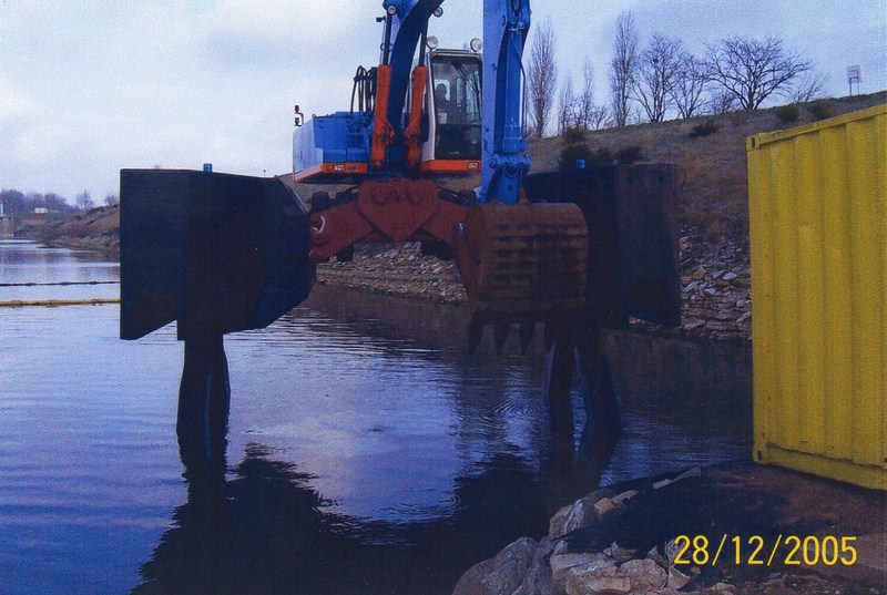 - Pelle flottante sur pneu se met à l'eau par ses propres moyens à partir d'une rampe
