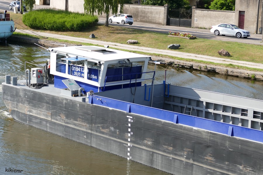 Il a fait un Strasbourg - Dunkerque au mois de mai, avec une pièce, je crois un échangeur (thermique ?). Il devait passer par les canaux mais un arrêt de navigation au plan incliné d'Arzviller l'a obligé à passer par le Rhin. Là, sur les photos, c'est le retour à vide de Dunkerque pour aller charger à Corbeil, une pièce pour Cattenom (Moselle).
