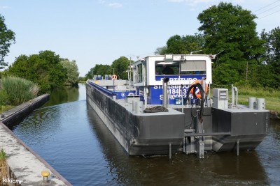 D'après l'article de NPI (Navigation - Ports - Intermodalités), la pièce et son emballage représentaient un chargement de 340 tonnes, je ne sais pas ce que ça représente comme enfoncement pour ce bateau bien façonné :1854: , mais peut-être un peu trop pour rejoindre Briare.
