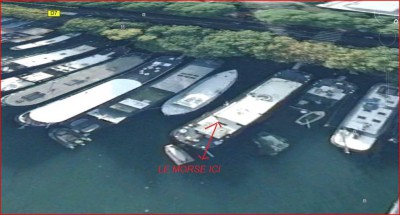 Le "MORSE" est toujours à St-cloud, à l'amont de la passerelle de l'Avre, et plus à l'amont des bateaux pris en photo sur Google.