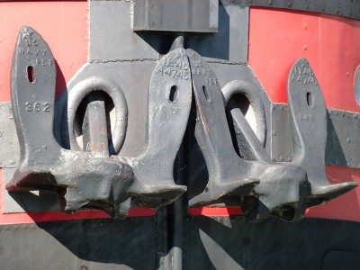 ce qui m'a particulièrement attiré, hormis le fait que j'aime assez les couleurs et l'aménagement (fenêtres discrètes en bordaille), c'est les ancres à l'avant, type US Navy :