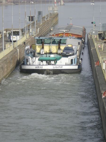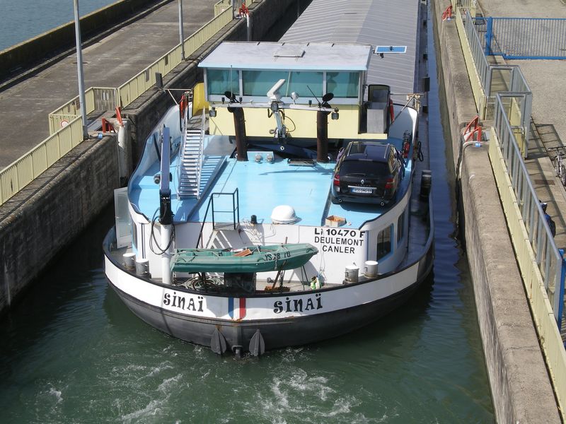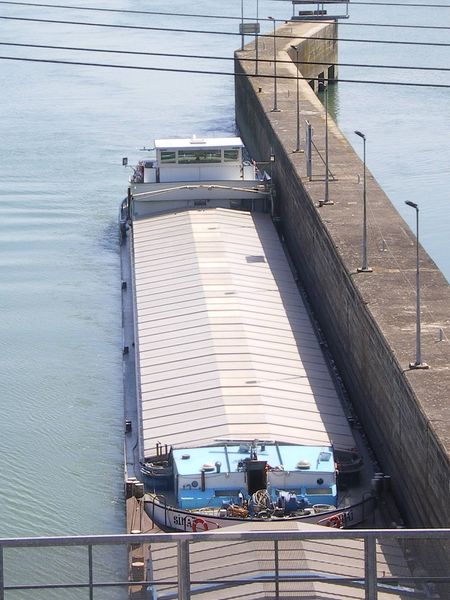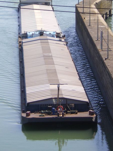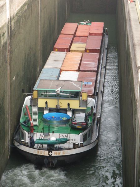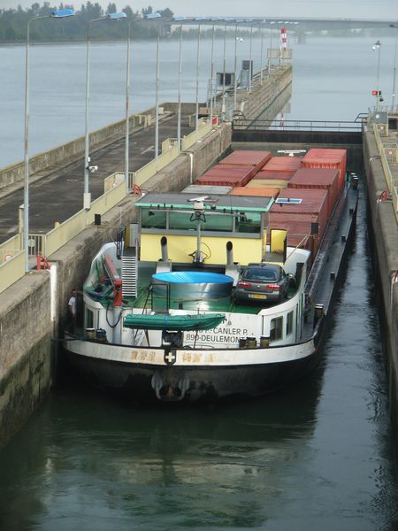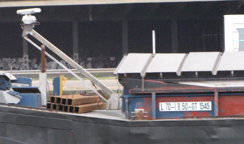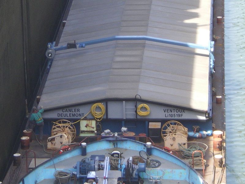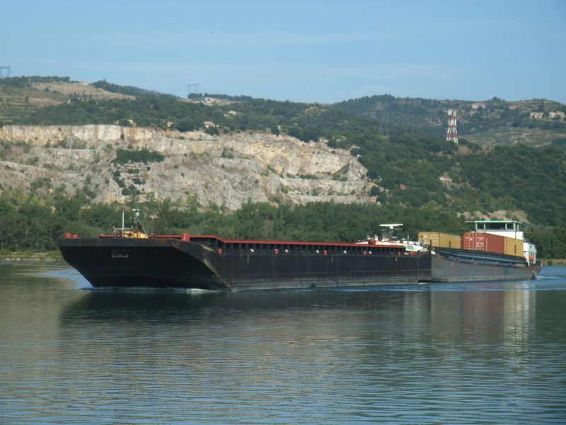 Comme on peut le voir, ce boot vient de l'autre cote. Sur le Rhone depuis 5 ans environ .A leurs arrivees, ces deux bateaux faisaient les conteneurs de Lyon (Valence ) pour Fos sur Mer. Maintenant, ils sont au divers, avec des ecoutilles.