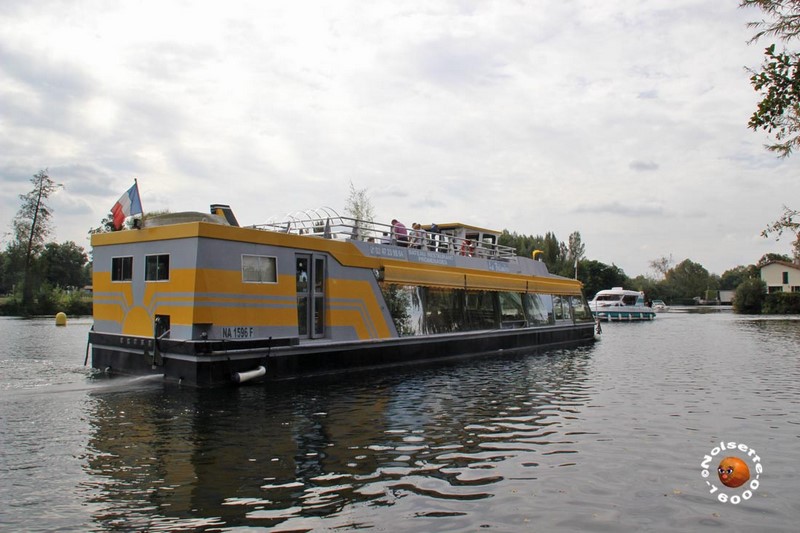 https://www.amis-du-cher.fr/saga-de-la-belandre/Dim ; 23 m X 5 m Moteur 2 X 80 CV + propulseur d'étrave