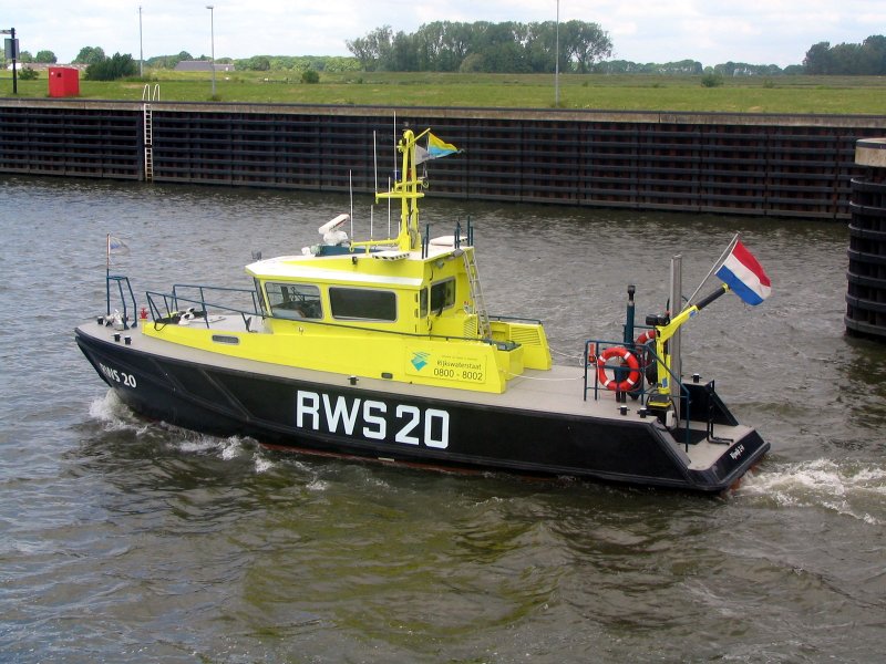 RWS 20 , 13,56 x 3,85 x 1,02 , Bouwjaar 2002 , Werf Greuns in Leeuwarden ( Nederland ) , 2 x 410 pk Lombardi , ex P 35, eigenaar Rijkswaterstaat Rijksrederij in Rijswijk (ZH)