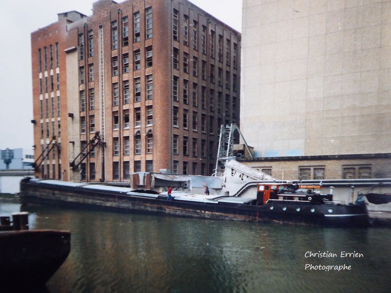 Les écoutilles sont blanches car le bateau charge des sacs de farine.
