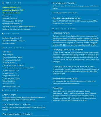 Le contenu des pages Web étant parfois éphémère, je joins la fiche du PATRIMOINE MARITIME ET FLUVIAL.