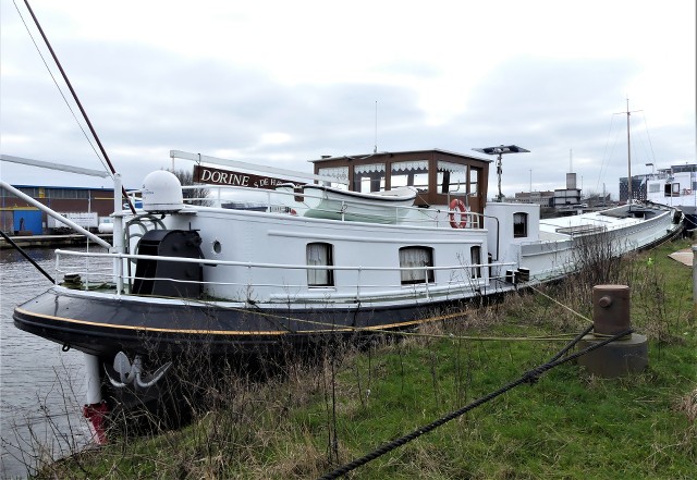 Dorine , 37,30 x 5,39 x 2,21 , 244 ton , Bouwjaar 1931 , Werf Barkmeijer in Briltil ( Nederland ) , 140 pk Stork type AR 213 , ex Spes , ex Nova Cura , ex Vago Reste , eigenaar S. de Haan in Delfzijl , ENI 02201493