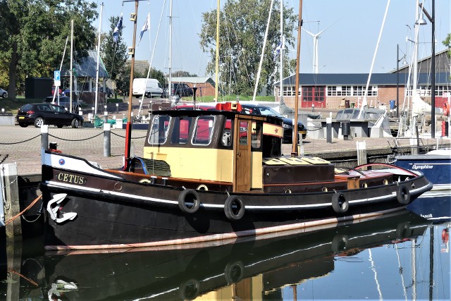 Cetus , 15,15 x 3,82 x 1,60 , Bouwjaar 1930 , Werf Wolthuis in Sappermeer ( Nederland ) , 180 pk M.W.M-Benz , ex Trijncor , ex Herkules , ex Justitia , ex Peja , ex Dorien , eigenaar B.L.Brugman in Stad aan ’t Haringvliet , ENI 02202712