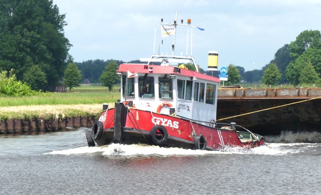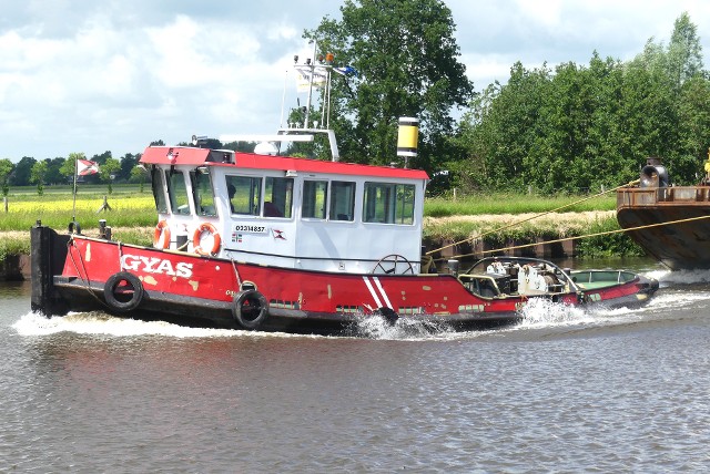 Gyas , 15,89 x 4,86 x 2,11 , Bouwjaar 1977 , Werf Schouten in Muiden ( Nederland ) , 485 pk GM , ex Eerland 25 , ex Joost de Moor , ex Gyas , eigenaar Wagenborg Sleepdienst BV in Delfzijl , ENI 02314857