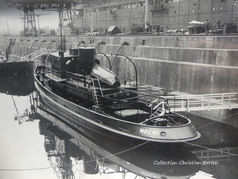 deux photos originales du remorqueur MOCNI construit en 1939 au chantier Cockerill.
