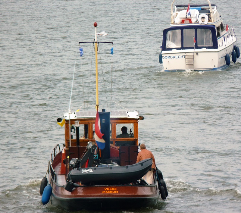 Vrede , 15,20 x 3,68 x 1,50 , Bouwjaar 1929 , Werf Lemaire & Zn. in Hoboken ( België ) , 1 x 8 cilinder Kromhout nr.13954 8-GSV 1954 inbouw 2003 vermogen 80 apk. = 59 kW. bij 1000 r.p.m. , ex 7-07-1929 Ernest/E.de Laet in Antwerpen , ex 28-08-1939 Vrede/L.de Meyer in Antwerpen , ex 19?? Vrede/C.de Meyer in Antwerpen , eigenaar L. van 't Wout in Makkum.