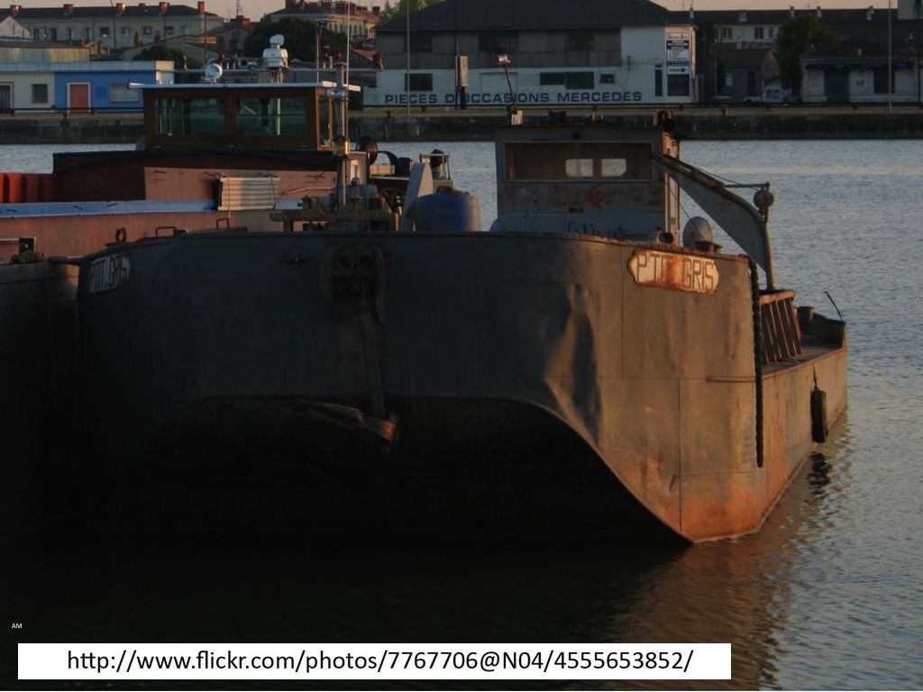Chaland en fer construit en 1962 au chantier de la Sté d'Exploitation des Chantiers de la Garonne à Bordeaux.