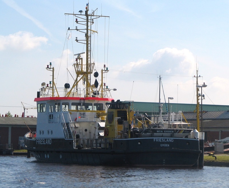 Friesland , 31,81 x 7,50 x 3,50 , Bouwjaar 1991 , Werf Deutsche Industrie Werke in Berlin ( Duitsland ) , 700 pk Deutz-MWM , eigenaar Wasserstraßen- und Schifffahrtsamt in Emden , IMO : 9031387