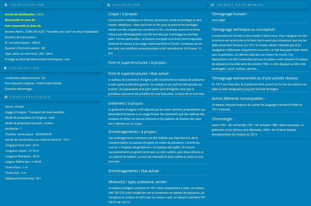 Le DAGERAAD - BX1854 F - a été labellisé PATRIMOINE MARITIME ET FLUVIAL en 2023.