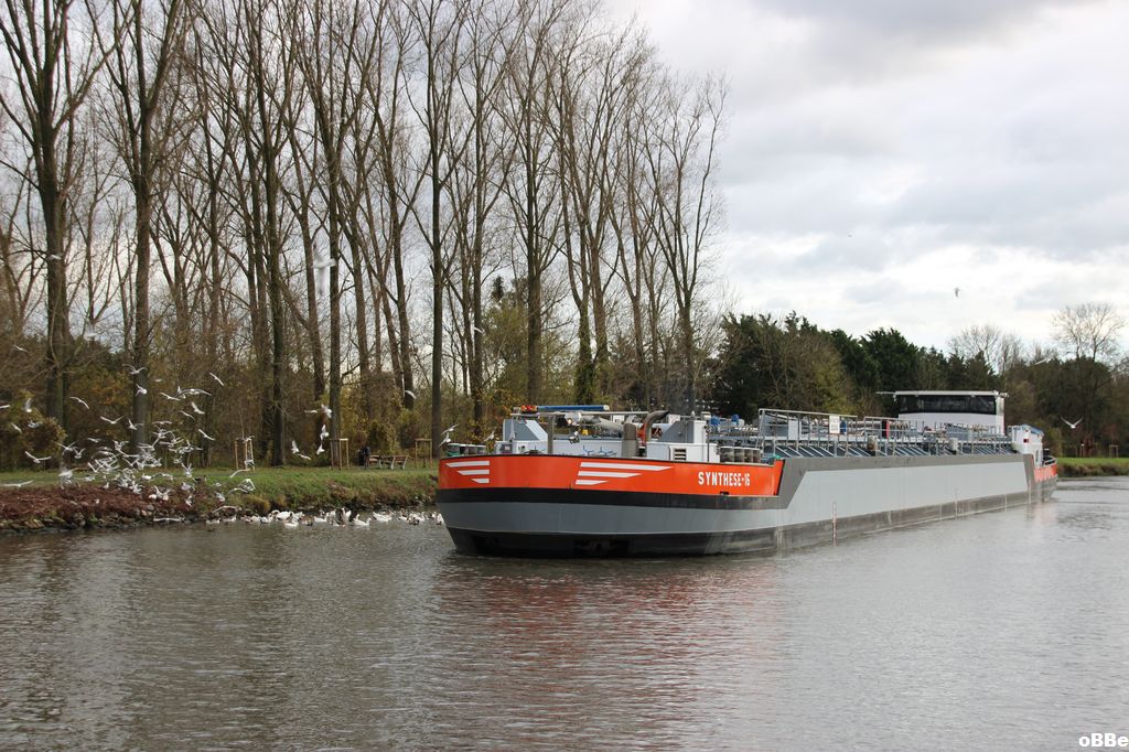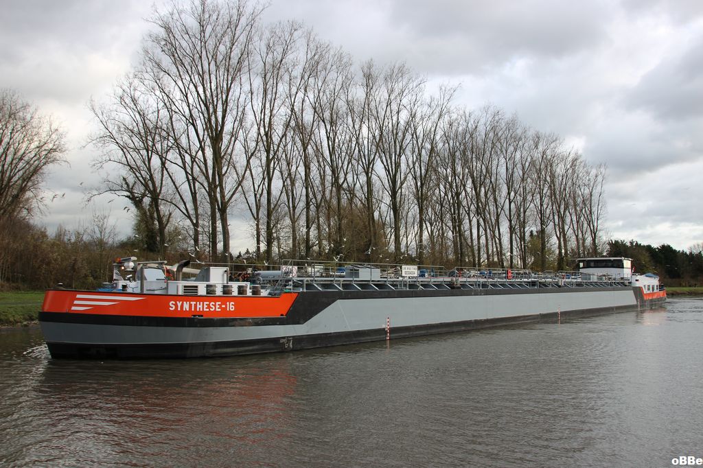 Synthese 16 , 85,00 x 9,50 x 3,15 , 1635 ton , Bouwjaar 2011 , Werf Stocznia Kozle Serwis in Kozle ( Polen ) en Bodewes Binnenvaart B.V. in Millingen a/d Rijn ( Nederland ) , 1014 pk Caterpillar , eigenaar Wijgula B.V. in Druten , ENI 02334334