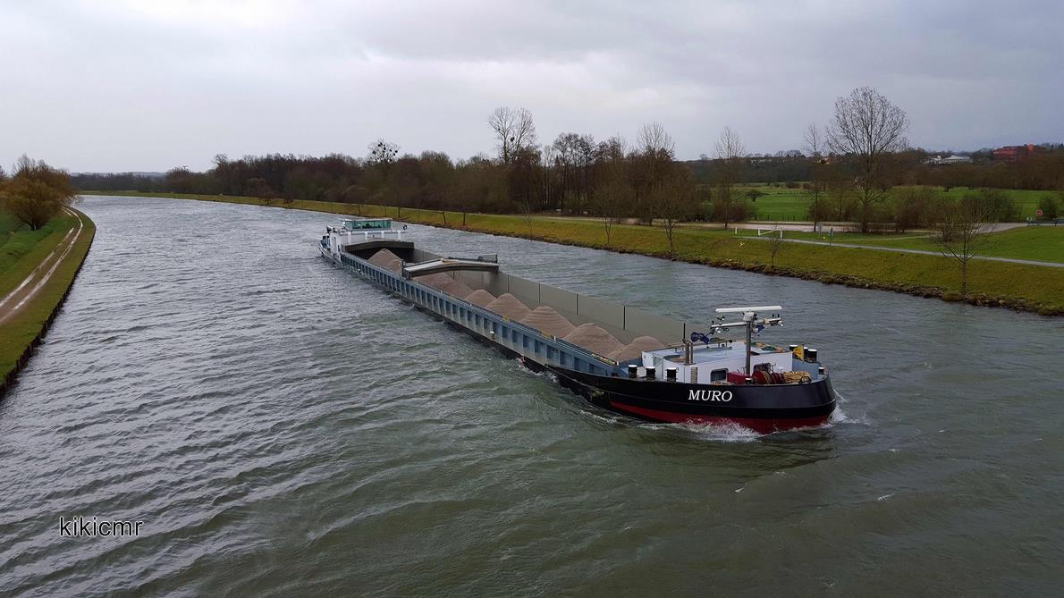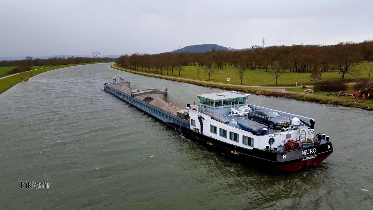 Montant à Gondreville (54), bief de Fontenoy-sur-Moselle de la Moselle canalisée, chargé de sable, il y a fort à parier qu'il monte jusqu'à la centrale à béton du port de Neuves-Maisons :