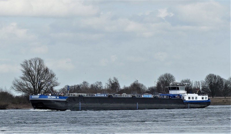 Eiltank 26 , 86,00 x 9,60 x 3,10 , 1677 ton , Bouwjaar 2008 , Werf Triton Schiffswerft in Duisburg ( Duitsland ) en Neue Ruhrorter Schiffswerft in Duisburg ( Duitsland ) , 1278 pk Mitsubishi en 383 pk Electromotor – Verhaar Omega-Jet boegschroef , eigenaar Jaegers Reederei GmbH & Co KG in Duisburg , ENI 04806400