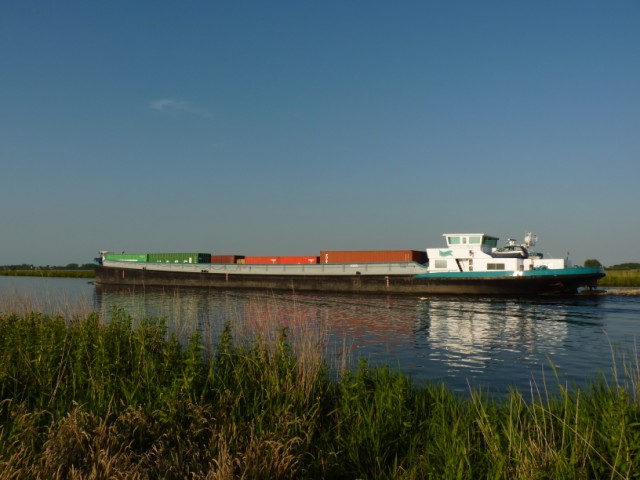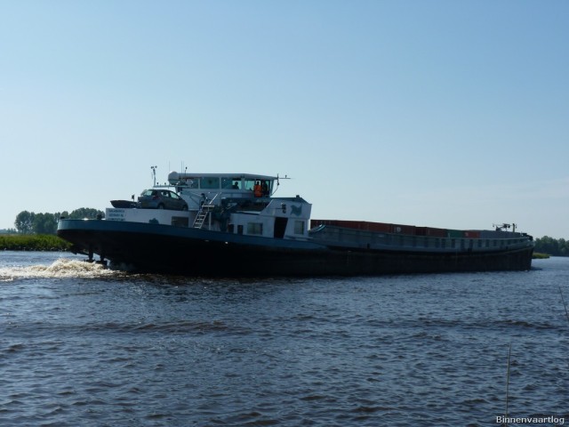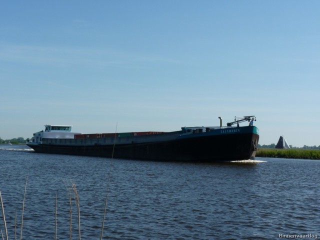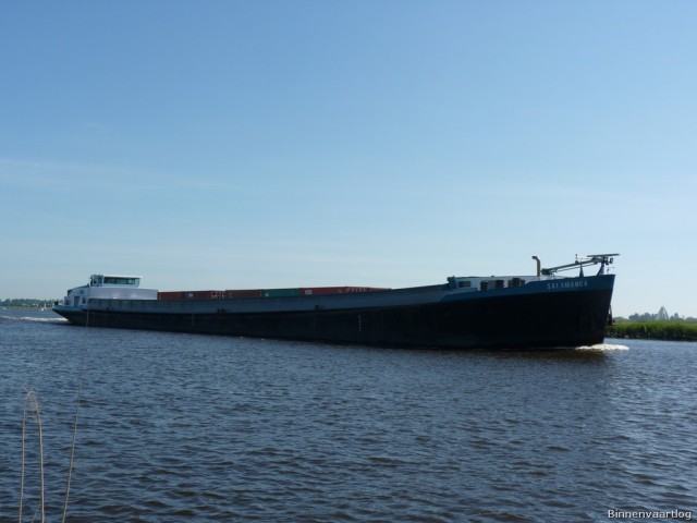 Salamanca , 90 x 11,49 x 2,37 , ton 2205 , 160 Teu , Bouwjaar 1958 , Werf Gute Hoffnungshutte in Walsum ( Duitsland ) , 2 x 640 pk Mitsubishi en 320 pk Daf boegschroef , ex Mineral 20 , ex Damco 141 , ex Specualnt 1 , ex Sayonara , ex Theodorus Johan , ex Quinto , ex Deqebe , ex Storm , eigenaar Aqua Cargo BV in Rotterdam , ENI 02319451