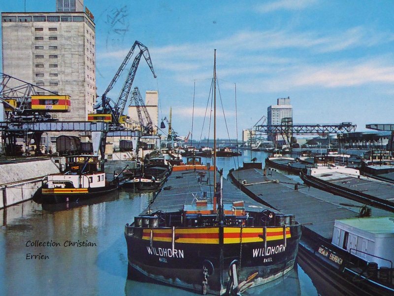 Pour la batellerie les années cinquante et soixante étaient un temps de transition. Les chalands comme le WILDHORN sont rapidement devenus moins, la motorisation a progressé et il y avaient encore des moteurs qui remorquaient. Et en même temps on a experimenté avec les pousseurs! Un temps très divers et intéressant. Alors, en 1969 le port avait onze ans. Je ne pense pas que les chalands dans cette groupe avec le WILDHORN soient encore en activité, mais déjà utilisé comme - comment est-ce qu`on dit en francais - bateau entrepôt ("Lagerschiff" en allemand). Je doute que le moteur de la même compagnie à gauche remorque encore en 1969.