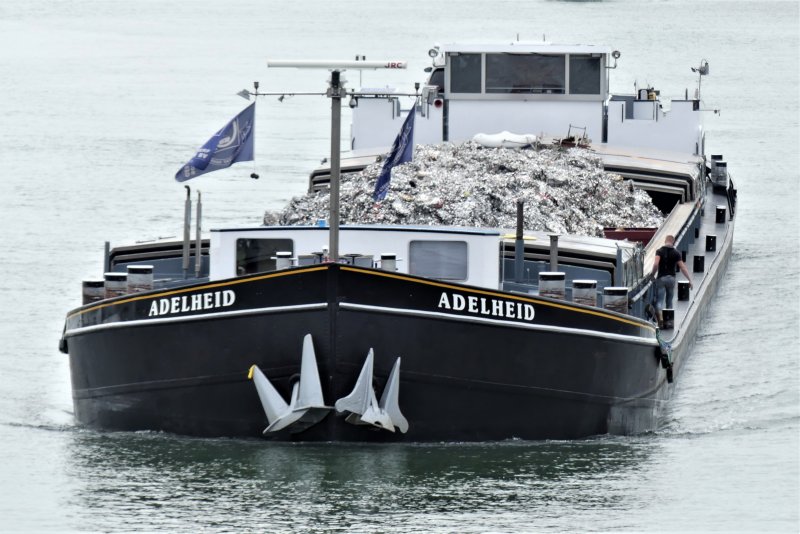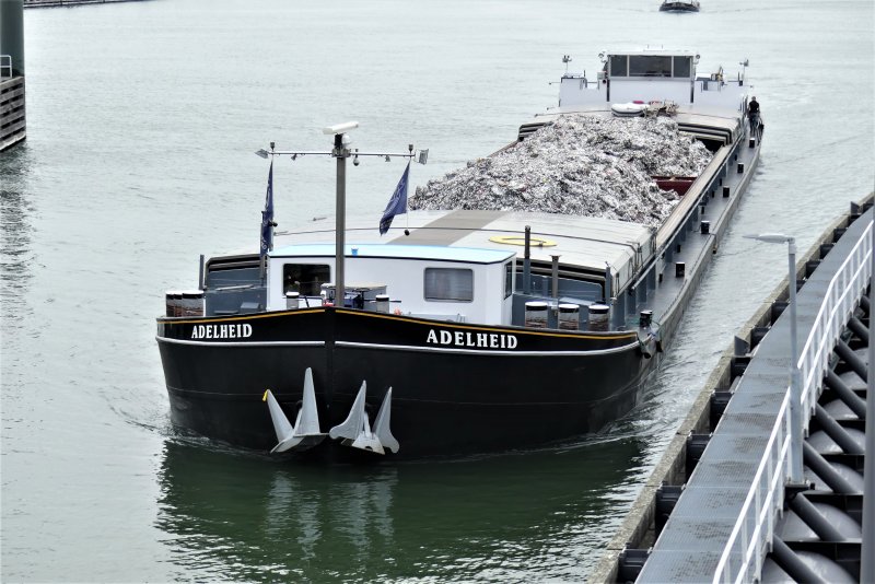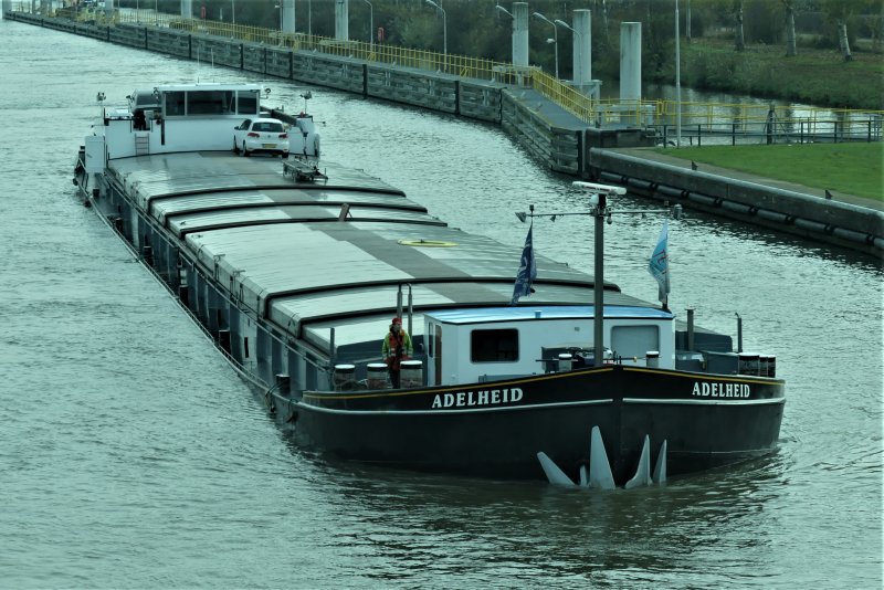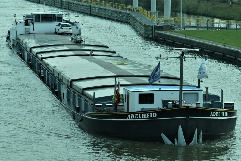 Adelheid , 85,98 x 10,20 x 2,65 , 1600 ton , Bouwjaar 1923 , Werf Gutehoffnungshütte in Walsum ( Duitsland ) , 2 x 600 pk Volvo en 320 pk DAF boegschroef , ex Aschaffenburg , ex Damco 127 , ex Beata , eigenaar Green Inland Shipping in Garderen , ENI 02300591