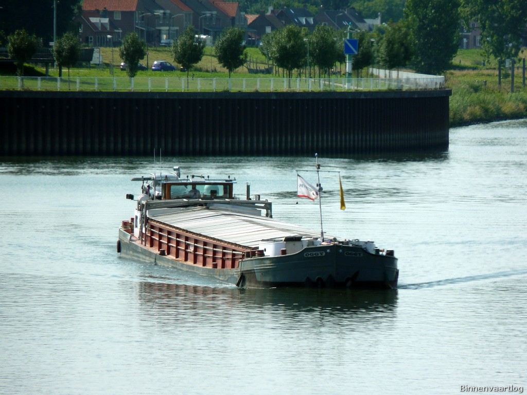 Oggy , 50,00 x 6,60 x 2,61 , 620 ton , Bouwjaar 1954 , Werf de Wachter in Boom ( Belgie ) , 400 pk Cummins en 150 pk Cummins boegschroef , ex Berjo , eigenaar Braeckman in Evergem , ENI 06002817