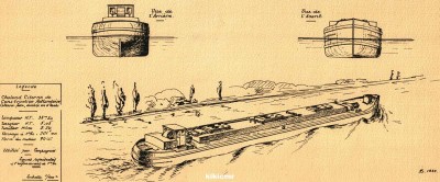 Quelques types de bateaux dits péniches de 38m50 de long et au-dessous