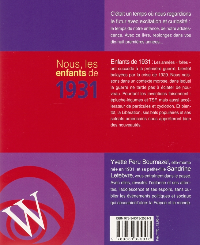 Le thème principal de ce livre n'est pas la batellerie, mais l'auteure, Sandrine Lefebvre, nous fait partager la jeunesse des enfants nés en 1931, entre crise de 1929, 2ème Guerre mondiale et début des Trente Glorieuses, au travers des souvenirs de sa grand-mère, Yvette Peru Bournazel, fille de mariniers, née sur le bateau ALICE.