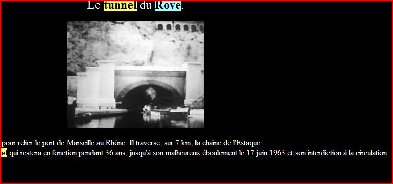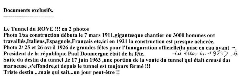 des photos et un document de la construction du tunnel du rove, juste sur la droite l'ESTAQUE ou en 1961 j'ai vide de la potasse