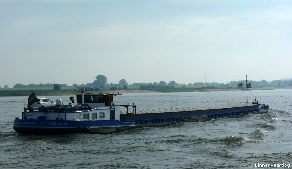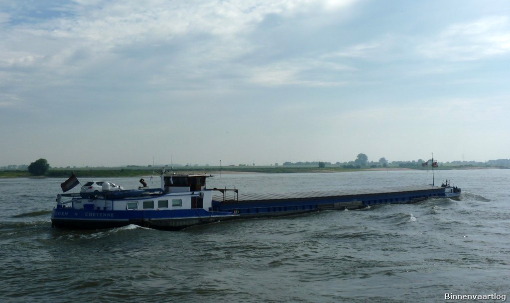 Cheyenne , 71,96 x 7,55 x 2,69 , 962 ton , Bouwjaar 1962 , Werf Janathijs in Rumst ( Belgie ) , 862 pk Mitsubishi en 188 pk DAF boegschroef , ex Cuba , ex Novalis , ex Luctor , ex Mira Ferramenta , eigenaar Cheyenne Scheepvaartbedrijf in Nijmegen , ENI 02316433