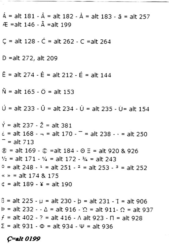 pour les accents et cedille en majuscule appuyer sur ALT et taper le nombre indiquer sur clavier numerique
