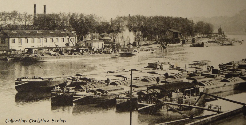 A gauche JOYEUSE au milieu je lis MISSISSIPI une barque que je n'ai pas trouvé sur le forum et à droite un ponton le MOUSSON. Des bateaux de la Cie HPLM