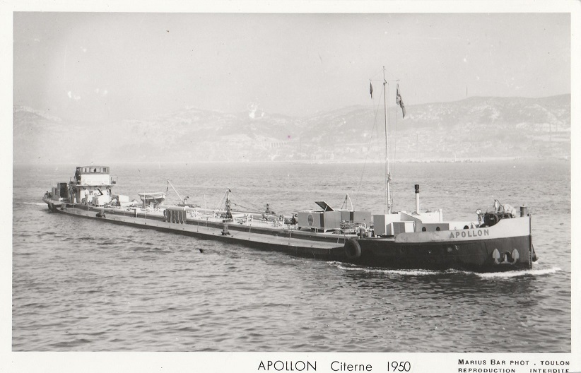 APOLLON, de la Shell-Berre, automoteur, sûrement barque transformée, d'après la photo d'arrière (qui ne passe pas).