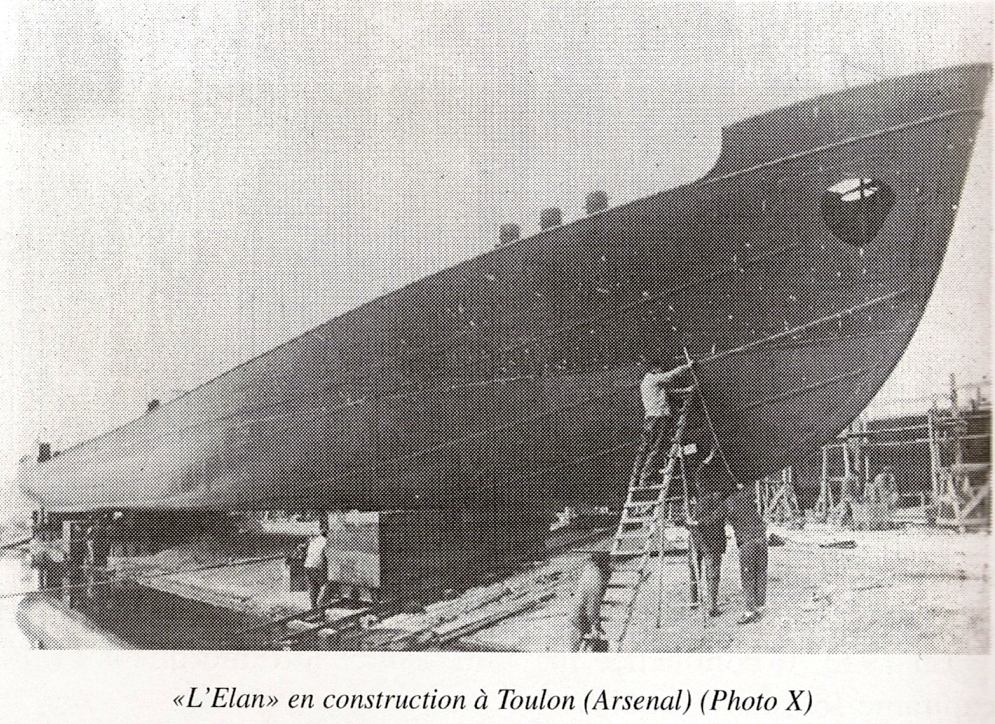 Sur le chantier de construction, on peut apprécier l'étrave de ces cinq toulonnais.