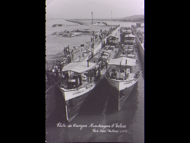 Je pense avoir été un des premiers à franchir cette écluse, avec le CITERNA 18, avalant, le 3 juillet 1952, à 12h20. Mais, en rodage, la descente a duré ...1h40 !...