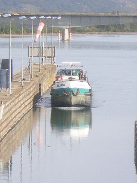 Ce 38 m est regulierement sur le Rhone, pavillon Allemand.