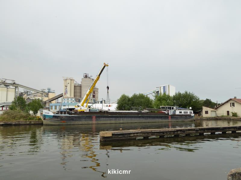 Il a déchargé aujourd'hui au port de Saint-Phlin (La Madeleine) un transformateur pour le poste EDF de Laneuveville-devant-Nancy. D'où venait-il ? Je ne sais pas, mais ce qui est sûr, c'est que juste avant il avait fait un voyage en direction du Rhône, et que "Fortuna" l'a vu sur le canal des Vosges, remontant vers Nancy, début juin : donc une pièce chargée dans le Sud...