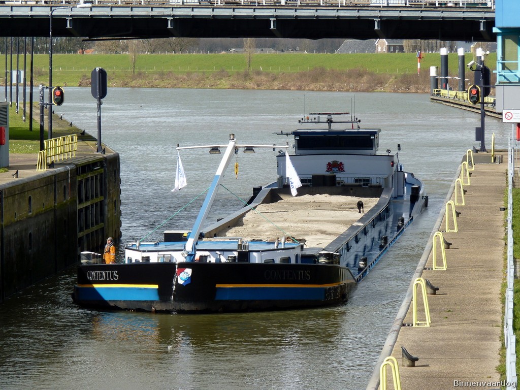 Contentus , 86,00 x 9,54 x 2,97 , 1563 ton , Bouwjaar 1950 , Werf Bodewes in Millingen a/d Rijn ( Nederland ) , 1014 pk Caterpillar en 435 pk DAF boegschroef , ex Diamant , ex Phoenix , ex Palmersward , ex War-Dy , ex Orient , eigenaar Vof. Contentus (A.L. Bruinooge) in Krabbendijke , ENI 02318115