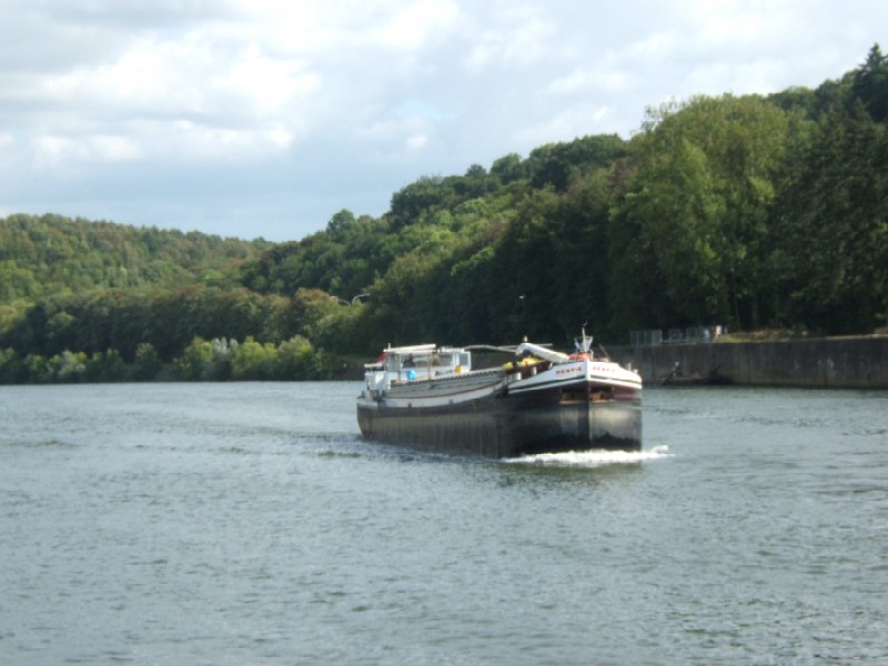 .Vu montant sur la Meuse près de l'écluse Grands Malades de Namur .