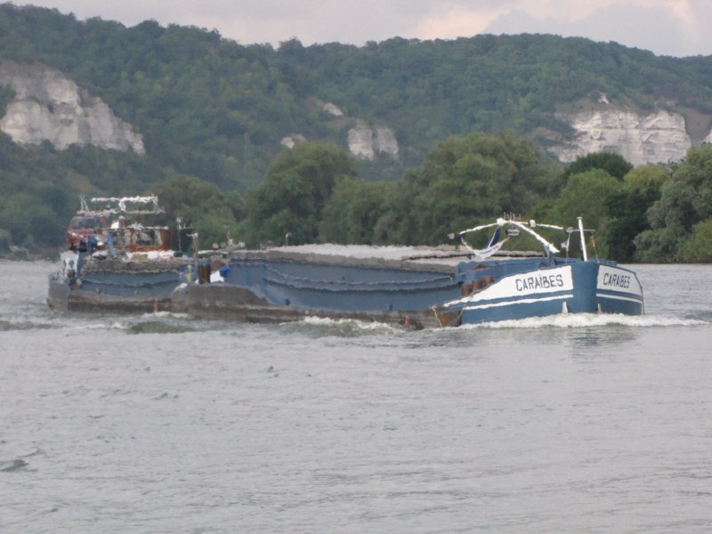 Il pousse la barge CARAIBES que je vais mettre par ailleurs et dont j'ignore tout.