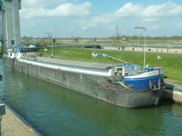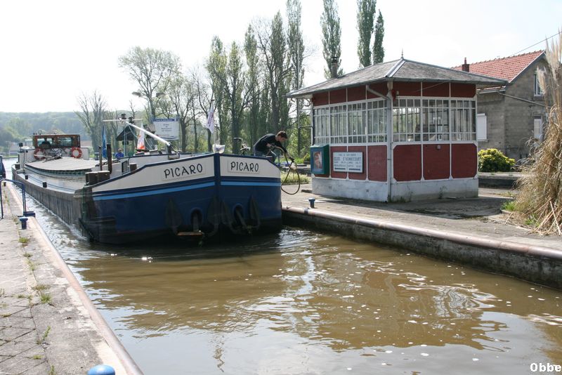 Le PICARO fait une halte en amont de l'écluse de Bourgogne pour aller faire des courses au supermarché voisin.