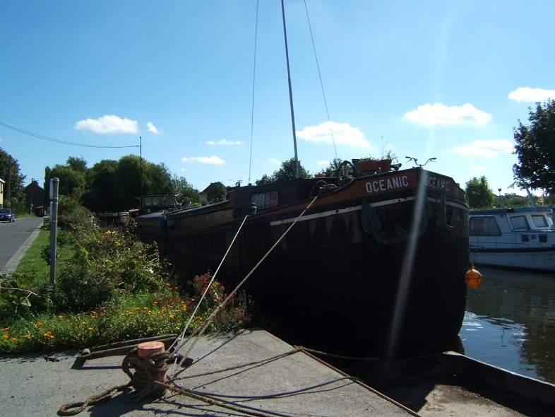 Vu à Péronnes ( extrémité du canal désaffecté de Pommeroeul-Antoing, OCEANIC, aujourd'hui logement des enfants des bateliers. La fille n'a pu me dire que le lieu du chantier: Boom