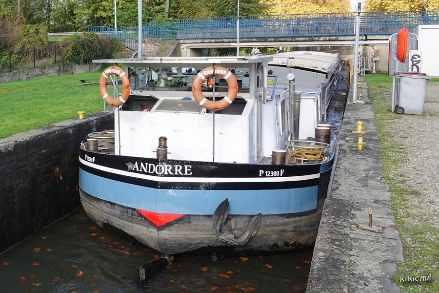 Puisqu'on ne l'avait pas encore avec ses nouvelles couleurs, le voici, à l'écluse n°84 d'Illkirch-Graffenstaden (67), sur le canal du Rhône au Rhin :