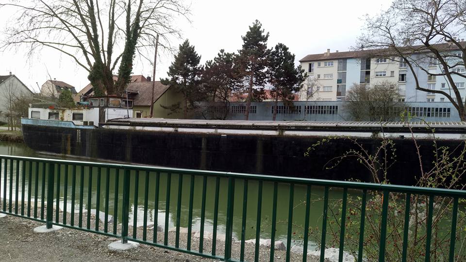 L'Alsace, illustrant un article en date 17 janvier 2022 annonçant que ce bateau, amarré rue des Bateliers, à Mulhouse (68), allait être déplacé :