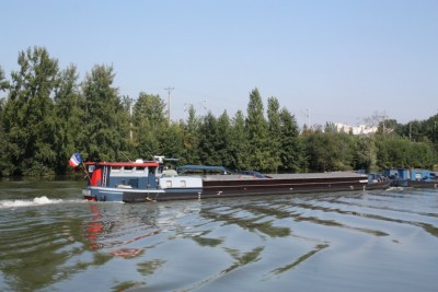 CLANDESTIN immatriculé 1822972 construit en 1948 par le chantier Van Damme . Il est le pousseur de