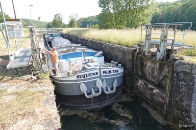 SEQUENS était à Vienne au printemps dernier, et là il fait encore mieux ! Il a chargé un transformateur électrique de 130 tonnes à Vernou-la-Celle (77), sur la Haute-Seine, aux Eaux Chaudes, pour Bratislava, en Slovaquie, sur le Danube. La raison aurait voulu qu'il fasse le détour par le nord pour remonter le Rhin jusqu'à Mayence, mais par bonheur, pour démontrer que le petit gabarit peut encore avoir une utilité, notamment pour ce genre de transports, il a dû passer par la Marne, le latéral et le canal de la Marne au Rhin. Ça m'a donné l'occasion de faire quelques photos :