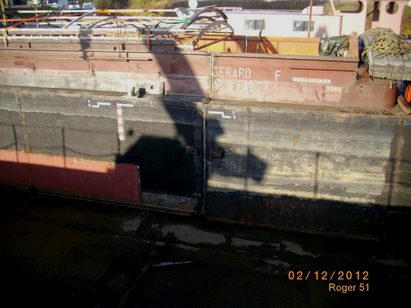 Le GERARD est à St. Jean de Losne maintenant. Il y a deux ans que le batelier avait fait son dernier voyage. Maintenant il obtient une pension et il semble qu`il veut rester à St. Jean de Losne, ou il a la permission de VNF pour rester hors de la ville. Le batelier veut construire qc. pour amarrer - on peut voir des équerres soudées à la coque avant et arrière et on peut voir aussi les tubes carrés sur le bateau. Au moment, il a encore besoin de la echelle et du bachot pour aller à la terre.