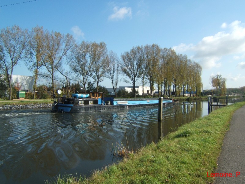Quand on parle du loup, on voit sa queue.La barge arrive et penetre dans l'ecluse de Kampenhout .Mais cette fois la barge Mexique suit son pousseur Mexico Toujours un exercice de style. Les ecluses du canal de 52x 7 m. ne permettent pas le passage de 2 freycinets en meme temps.