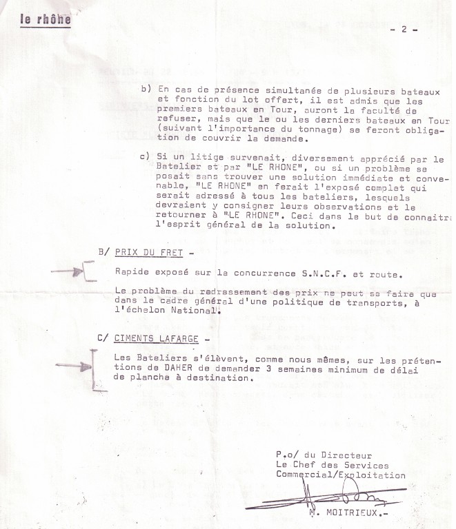 Par son dynamisme, son envie de modernisation, il fut le Maître d'oeuvre d'une opération qui consistait à faire venir sur le Rhône, depuis Rotterdam, 3 automoteurs de 1350 tonnes et 1000 CV, répartis entre trois artisans et ça, c'était du jamais vu.