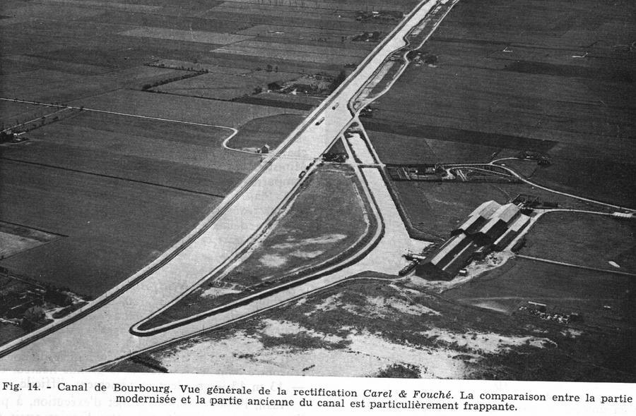 kikicmr a écrit:Le numéro du 10 juin 1961 de la Revue de la Navigation intérieure et rhénane est consacré à la voie navigable à grand gabarit Dunkerque - Lille - Valenciennes, alors en cours d'aménagement ; l'un des articles est illustré d'une photo dont la légende indique qu'il s'agit de la rectification Carel-et-Fouché (terminée en 1957) :