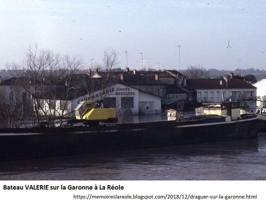 Sur deux photos visibles sur internet -l’adresse est notée- on peut voir un bateau VALERIE sur la Garonne à La Réole.